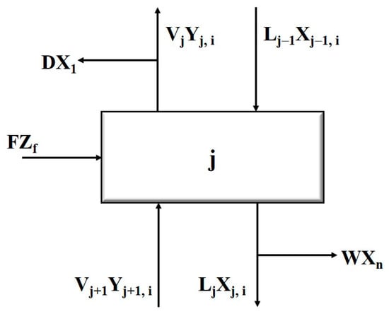 The material conservation relationships of each tray of the distillation column are shown as follows: