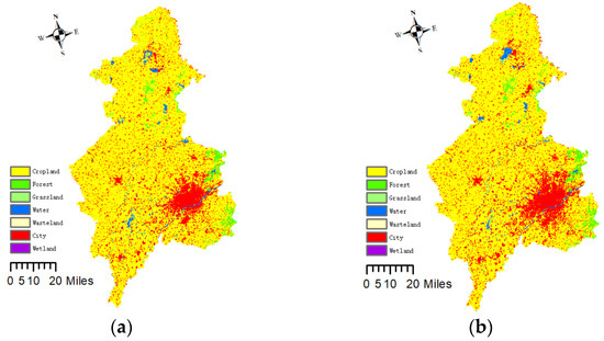 Land use type data. Subfigure (a) is the land use types in 2010. Subfigure (b) is the land use types in 2019.