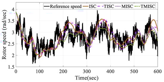 Rotor speed comparison for ISC, TISC, MISC and TMISC.