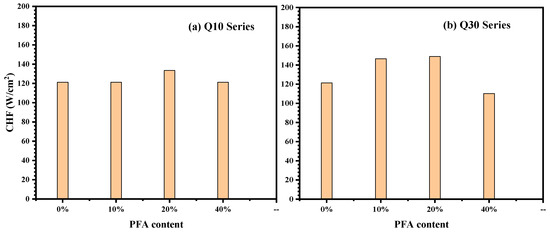 The relationship between PFA content and CHF for Q10 series and Q30 one. (a) Q10-series; (b) Q30-series.