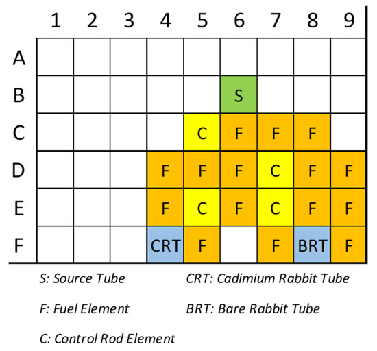 As shown in Figure 2, a core configuration of 120 W is represented. The MCNP5 model was performed with this configuration but without the HCRT [11], as represented in the figure. This was also applied to the validity study of SCALE6 that had been performed [13].