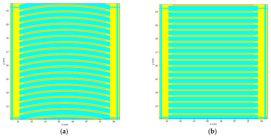 Top view of (a) curved fuel plates and (b) flat fuel plates.