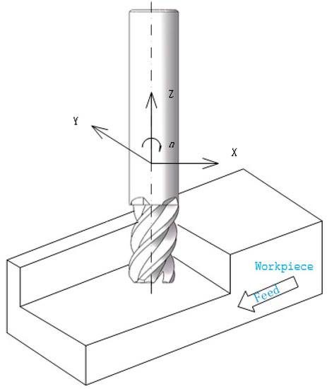 Figure 6 shows the peripheral milling process, where x is the feed direction, y is the feed normal direction and Z is the axial direction. The coordinate system is fixed on the workpiece and the origin of the coordinate is the center point of the front end of the milling tool in the initial state.