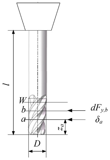 The y-direction deviation of the cutting force on element b at the contact point za can be given by the cantilever beam formula: