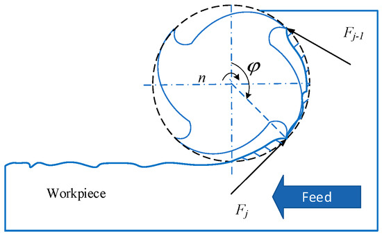 The tool teeth are numbered sequentially when they are first involved in cutting. The first tooth involved in cutting is the first tooth. At time t, the tooth position angle of the j-tooth is as shown in Formula (38).