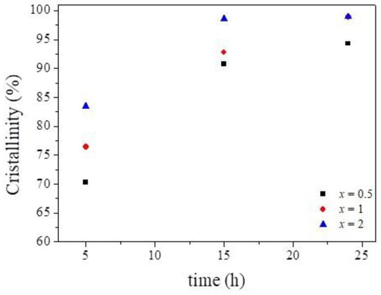 x = 0.5; crystallization time = 5, 15, and 24 h.
