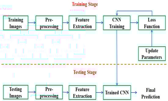 CNN’s are feed-forward neural networks that rely on features such as receptive field, weight sharing, and pooling operation in order to characterize the image data []. Generally, CNN involves three key layers for example convolutional layer, pooling layer, and fully connected (FC) layer. In convolutional layers, the convolution operation between various kernels and the input image is performed to obtain feature maps. The convolution layers reduce drastically the total network parameters due to the concept of weight sharing and identify various patterns using the receptive field. The pooling layer pools features via a window of a particular size. The pooling layer minimizes the size of the feature map and parameters used in CNN. It helps to reduce the computational cost. Max-Pooling is the widely used pooling technique for designing CNN where it considers the maximum value of input taken by the pooling window. The FC layer acts as a classifier. The features propagated in a forward direction through the network to the FC layer. Finally, the back-propagation procedure is utilized to update the network parameters with the help of gradient descent.