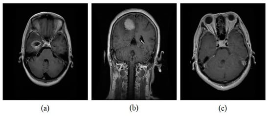 Sample brain tumor dataset from Figshare (a) Glioma (b) meningioma (c) pituitary.