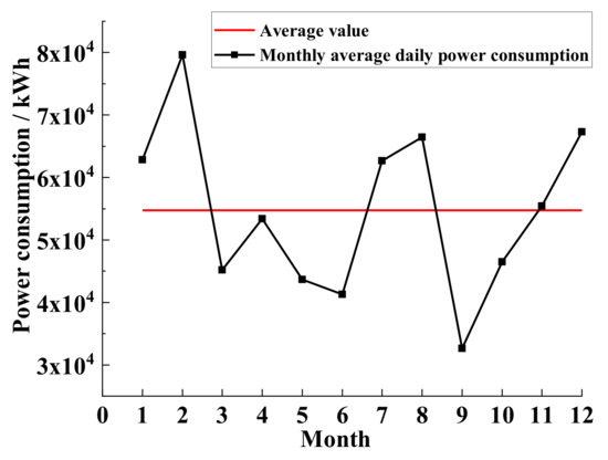 In order to correct for the deviation in the total monthly electricity consumption caused by the inconsistency in the number of days in each month, the average daily electricity consumption in each month was compared and analyzed (Figure 4).