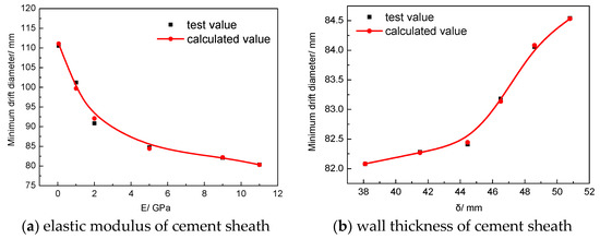 Therefore, based on the analytical model of Formulas (8) and (9), the minimum drift diameter of the casing under different elastic modulus and wall thickness of cement can be quickly calculated, providing technical support for the actual production.
