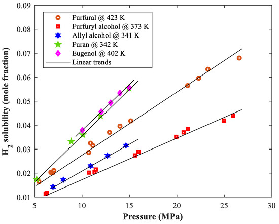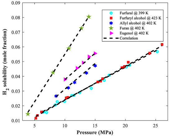 - Qureshi, M.S.; Touronen, J.; Uusi-Kyyny, P.; Richon, D.; Alopaeus, V. Solubility of hydrogen in bio-oil compounds. J. Chem. Thermodyn. 2016, 102, 406–412. [Google Scholar] [CrossRef]