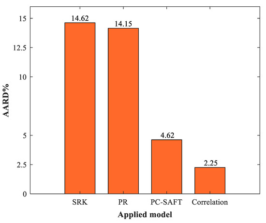 3.4. Comparison between the Empirical Correlation and Equations of State