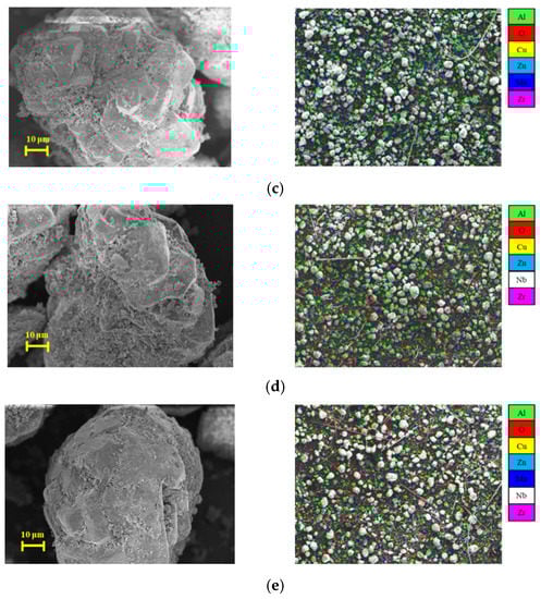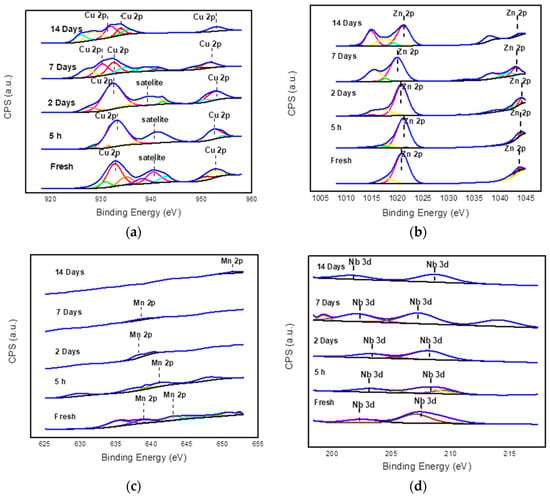 XPS spectra for (a) Cu 2p (b) Zn 2p (c) Mn 2p (d) Nb 3d and (e) Zr 3d.