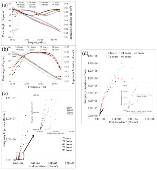 3.1.3. Electrochemical Impedance Spectroscopy (EIS), Active Corrosion Testing of Alternating Current