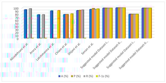 Comparison of the performances between the suggested system and previous studies.