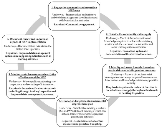 Drinking-water quality regulation should be underpinned by risk management [1]. Effective WSP implementation requires governments to set a national, enforceable framework and wider institutional support [12,34].