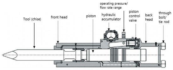 - Korean Agency for Technology and Standards (KATS). Hydraulic Breaker for Construction Machinery—RS B 0022; KATS: Eumseong, Republic of Korea, 2009.