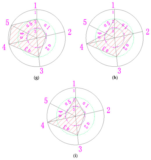 Figure 2i, the shadow area ratio of each radar chart is respectively 34.70%, 52.70%, 52.70%, 51.52%, 43.92%, 44.53%, 36.94%, 30.93% and 23.98%. According to the second characteristic, combined with shadow area, the area is sorted from large to small: S2 = S3 > S4 > S6 > S5 > S7 > S1 > S8 > S9. This sorting not only quantitatively distinguishes the advantages and disadvantages of samples, but also comprehensively expresses the quality characteristics of each sample, which is conducive to guiding the improvement of equipment and the adjustment of equipment technology.