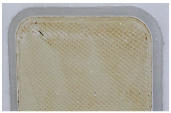 After completing the measurements series, the NF270 membrane was removed from the module. Figure 8 presents the photography of the membrane after the treatment process of fermentation broths purified by the MF membrane. It can be clearly seen that the membrane surface was covered by foulants. A mesh pattern was created on the membrane surface. In places where its fibers touched the membrane, darker lines are visible, indicating places where a thicker layer of deposit occurred. The results of SEM studies of a new membrane (Figure 9a) and that used for the treatment process (Figure 9b) confirmed that the latter membrane was covered with a layer of deposit. Most of the deposit was amorphous, although agglomerates were also observed. With significant image magnification (35k), bacterial cells were observed (Figure 9c). To be complete, it should be noted that bacteria presence can cause the development of biofouling, which during industrial long-term operation, can lead to rapid damage of NF modules.