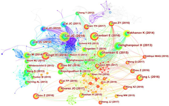 If a paper is cited by multiple papers at the same time, a reference relationship is formed between them. Meanwhile, author and journal citations have similar definitions. Citation analysis of references, authors, and journals can be performed with Citespace software.
