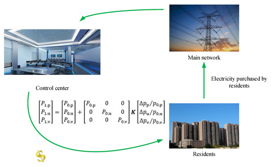 This work uses the price elasticity matrix data described in reference [24] to describe the response of the load to electricity price changes. The active DR diagram is shown in Figure 1.