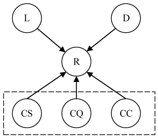The questionnaire is designed and distributed to experts with relevant background knowledge in order to obtain their DoB for the risk parameters, namely the L, D, CS, CQ, and CC associated with each risk factor. Compared with an ordinary Likert scale questionnaire, using DoB involves respondents’ uncertainty when answering questions, thus providing more useful risk insights. Based on the Bayesian network modelling theory, the risk parameter structure can be transformed into a Bayesian network topology graph with 5 parent nodes (L, D, CS, CQ, CC) and one child (R) node, as shown in Figure 5.
