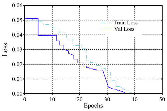 Figure 6 shows the change of the loss function with epoch value in the training and experiment of the LSTM model. The loss value declines with increasing training times on both the training and validation sets, as shown by the loss change curve in the figure, and its training value peaked at a loss value of 0.01 before levelling off. Although the value of loss slightly fluctuated, the network generally stabilized. The model must be determined after 30 iterations for the original determination.
