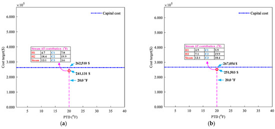 The structure of the paper is as follows. A primary capital-cost-targeting method is first established. Then, the deficiencies of the targeting method are analyzed and corrected using numerical experiments. Based on the targeting method, approaches are suggested for optimizing the stream’s uniform or individual TDCs. In case studies, the more appropriate cost target result is chosen to compare with the optimal cost result from the literature, and accuracy enhancement measures are suggested. After that, the technical strengths and limitations of this study are discussed.