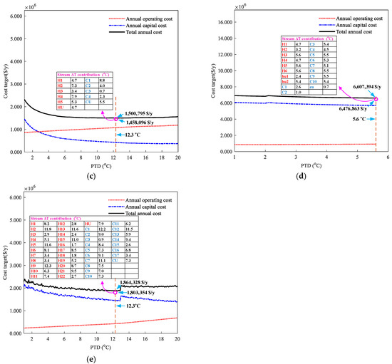 When using uniform TDCs for streams, the PTD between BCCs is the sum of two TDCs from hot and cold streams. The operating cost target and capital cost target change as the PTD changes. It is simple to find the optimal PTD with the lowest total annual cost target. Because of this concise and clear correspondence relationship, uniform TDCs of hot and cold streams are widely used for pinch analysis.