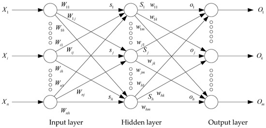 The FNNs are also known as multilayer perception (MLP), which are among the most widely used and rapidly developed artificial neural networks. Each neuron is exclusively coupled to the neuron in the previous layer, and they are arranged in layers. There is no feedback between layers. Three-layer FNNs mainly include the input layer, hidden layer, and output layer, which is shown in Figure 1.