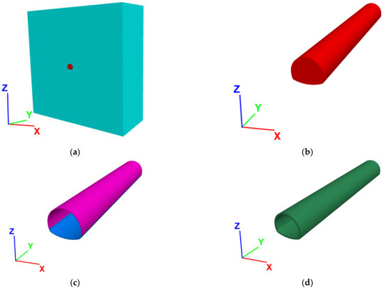 The model’s front and back sides, as well as both of its sides in the horizontal direction, were all subjected to directional displacement constraints. The bottom of the model was also subjected to directional displacement constraints, while the top surface of the model was left as a free boundary with no restrictions.