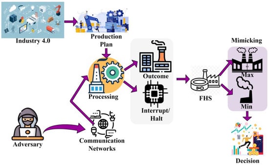 The production output is classified such that and are used for assessment. In the outcomes, is alone mimicked for . The , the generated output is pursued for identifying any risks in the previous . This analysis is not pursued under for whereas pursues for classification (Figure 2). Processing is classified as production outcome and interruption/halting to reduce the adversary impact present in communication networks. Adversary impact is due to the cyber impacting risk identified in the industrial processing unit while observing production output in any instance. Therefore, the normalization of data processing and production monitoring follows a high-objective function and is expressed as