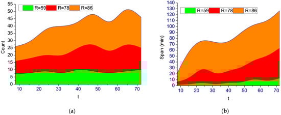 Based on the provided data, the is varied for estimating the count and span. As the increases, and varies for which the detection is performed. Therefore the is performed for maximum halts under varying . In the process the for the varying and is analyzed in Figure 7.
