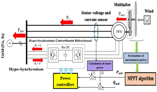 We disregard all of the losses in the converters and the filter, as well as the mechanical and Joule losses in the machine’s stator and rotor. We can write in this situation [22]: