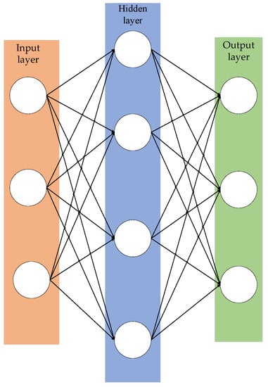 where: netj is the input of the hidden layer; Vji is the weight of the ith neuron of the input layer connected to the jth neuron of the hidden layer; Xi is the output of the ith neuron of the input layer; and Hj is the jth neuron of the hidden layer. The result of each neuron, f, is the activation function.