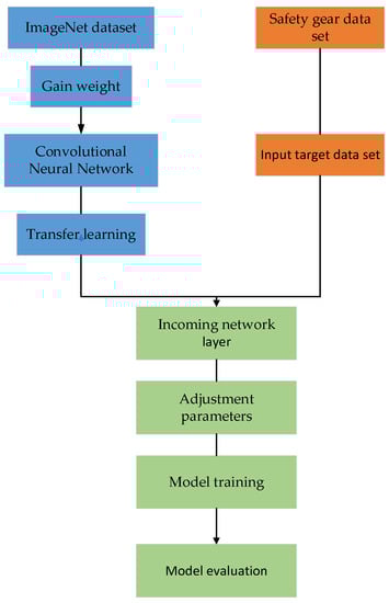 The behavior dataset of lifting operation drivers is limited. Consequently, only a limited amount of data can be used for learning algorithms. This inevitably leads to poor accuracy of the resulting model. Moreover, it is easy to cause overfitting in the case of restricted data sets. Although the accuracy of the training samples is exceptionally high, the generalization effect can be inferior. Therefore, the transfer learning idea is adopted to transfer the learned and trained model parameters to the new model, with the aim of helping to the train the new model. Since a large amount of data is correlated, sharing the trained model parameters to the new model by transferring learning speeds up and optimizes the learning efficiency of the model. As a result, it improves the recognition accuracy of unsafe behaviors. The process of transfer learning is shown in Figure 5.