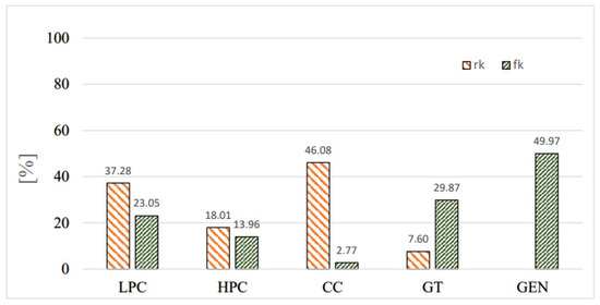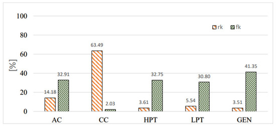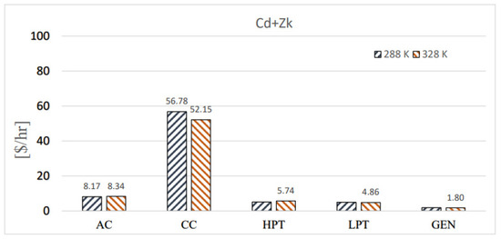 Important exergoeconomic variables used to evaluate and optimize thermal systems are relative cost difference,, and exergoeconomic factor, . characterizes the relative increase in average cost per exergy unit between fuel and product, and minimising is the goal of the optimisation process. For the kth component, can be expressed as an objective function [42]: