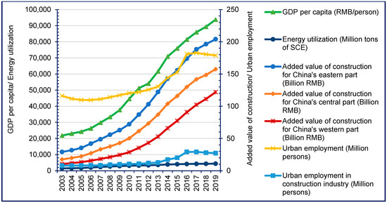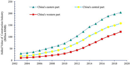 Outlining average trends of the added value of the construction industry across three parts of the Chinese economy. Source: Authors’ calculations based on China Statistical Yearbooks (2003–2019).
