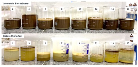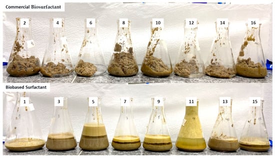 - The minimum volume for the contaminated soil to be covered by the surfactant was 500 mL. Surfactant dilution aimed to evaluate the possibility of using less product. Thus, it was decided to use the pure surfactant and the surfactant diluted with water (1:1, v/v).