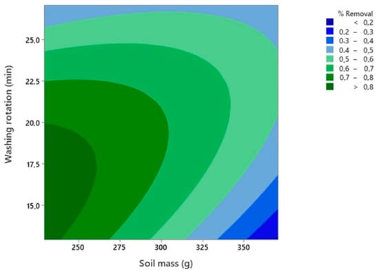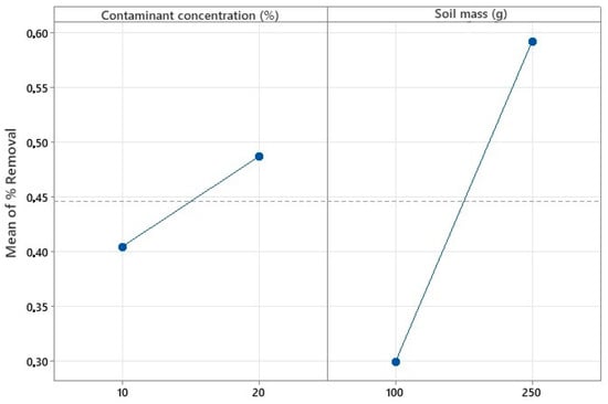 - The contaminant concentration values and the chosen soils. Soil contamination with engine motor oil was carried out by manually saturating 100 g of soil contained in a beaker with 10 g of engine oil previously weighted for level −1 and 20 g of engine oil for level +1. Level −1 of soil mass (100 g) was also based on a previous study [13], while level +1 (250 g) was chosen to study the MSRS ability to remove larger quantities of soil. These levels will be explained in detail below.