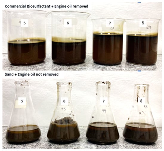 - Chaprão, M.J.; Ferreira, I.N.S.; Correa, P.F.; Rufino, R.D.; Luna, J.M.; Silva, E.J.; Sarubbo, L.A. Application of bacterial and yeast biosurfactants for enhanced removal and biodegradation of motor oil from contaminated sand. Electron. J. Biotechnol. 2015, 18, 471–479. [Google Scholar] [CrossRef]
