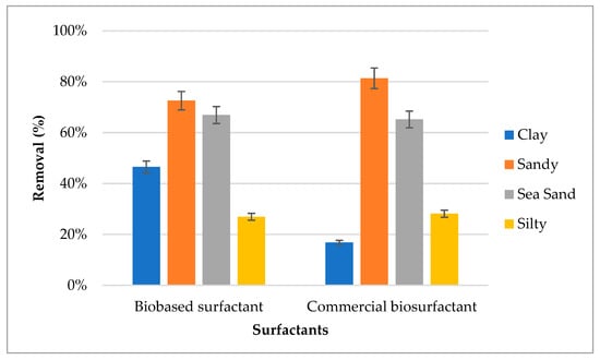 - Surfactant volumes were defined from observations made during the MSRS operation, and the volumes of 500 and 600 mL were sufficient to cover the soil inside the equipment, promoting a greater probability of washing and removal of the contaminant.