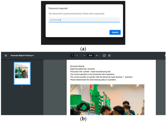 The real-time information cannot be revealed on the SCADA dashboard and can be automatically generated as a form. The result expressed that the encoded message over the MQTT transition could accurately be decoded as human-readable information for generating the form for users to read. Figure 15 shows the results of the anomaly report. The anomaly report has the current information and image. The employee ID number is encrypted as a password to protect the access privileges of the report.