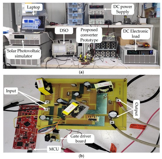 (a) Experimental testbed of the proposed HGVSU converter in a power and energy laboratory, and (b) hardware prototype of the proposed HGVSU converter.