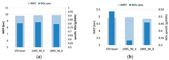 - The best trade-off achieved by the standard bowl appeared to be specific NOx = 0.5 g/kWh and IMEP = 4.9 bar.