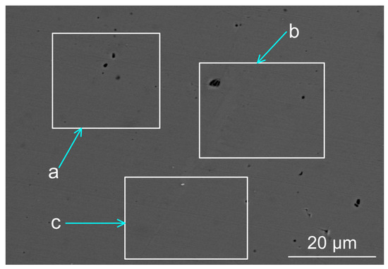 SEM-EDX analyses of marked areas (a, b and c) in the MP11 weld metal, as indicated in Figure 2 (mass%).