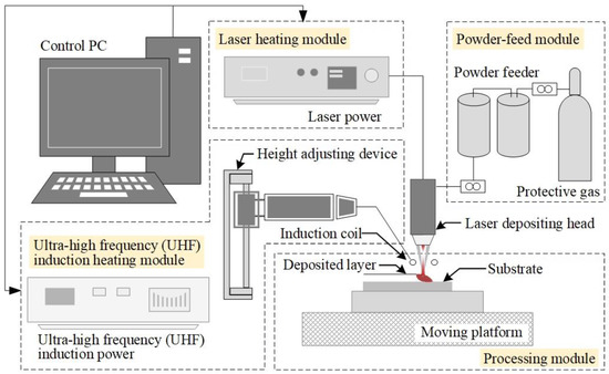 Schematic of laser-UHF induction hybrid deposition experimental platform.