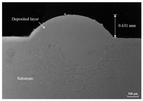 After the deposition experiments, the experimental samples were cross-sectioned by a wire electrical charge machine. The cross-sections of these samples were ground by SiC abrasive paper with 400 to 2000 mesh, and then polished with the diamond suspension on a metallographic sample polishing machine. The microstructure of the samples was observed by a scanning electron microscope (SEM) equipped with energy disperse spectroscopy (EDS). Before the microstructure observation, the polished cross-sections were etched with aqua regia (HNO3:HCl = 1:3) for 50 s to clearly reveal the microstructure morphology.