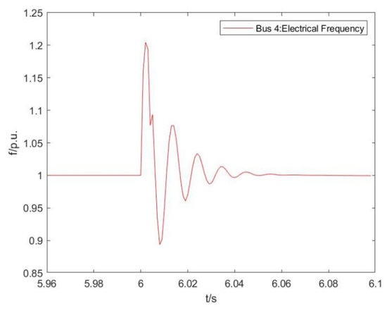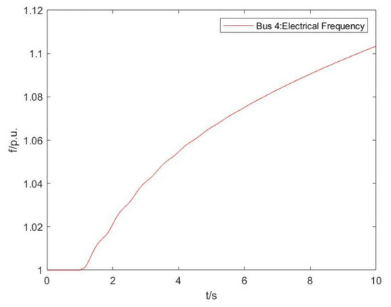 As can be seen from Figure 12, when the circuit breaker at node 8 trips due to fault and the circuit breaker has no subsequent action in 1 s, the system frequency continues to rise in 10 s and does not return to a stable state.