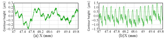 The specimen was secured onto the X-Y stage with the glass side facing the laser head, and the scan path was programmed through the CNC operating system. The laser scanning parameters used during the experiment are detailed in Table 1. The cut surface was then examined under an optical microscope (Axiovert 200, Zeiss, Oberkochen, Germany), while the crack edge profile and surface roughness were measured using a surface profiler (PGI Dimension, Taylor Hobson, Leicester, UK).